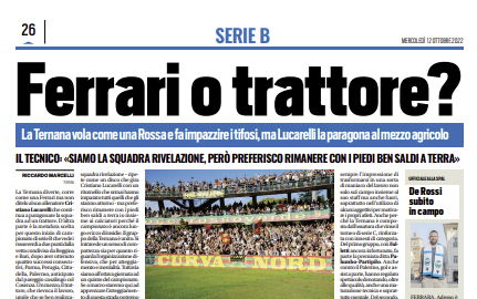 L'edizione odierna di Tuttosport si sofferma sulla Ternana e su Lucarelli. La Ternana diverte, corre come una Ferrari ma non...