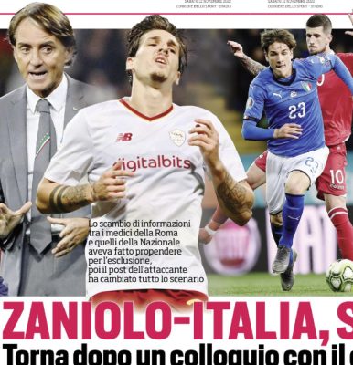 L'edizione odierna de "Il Corriere dello Sport" si sofferma su Zaniolo convocato dall'Italia. Zaniolo non va in Nazionale, anzi sì....