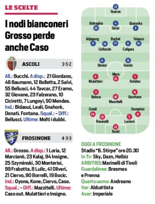 Corriere dello Sport: “Serie B, l’anticipo. Stasera Ascoli-Frosinone. Le probabili formazioni”