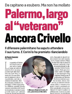 L'edizione odierna de "Il Corriere dello Sport" si sofferma su Roberto Crivello da escluso adesso torna ad essere utile per...