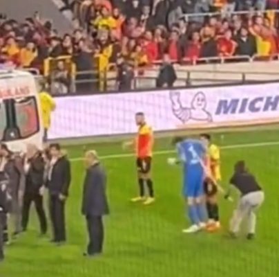 Incredibili immagini quelle che arrivano dalla 1. LIG, la seconda serie del calcio turco, durante la sfida Goztepe-Altay. Al 19’, dagli spalti...