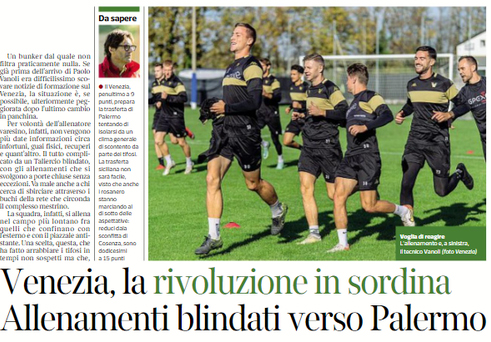 L'edizione odierna de "Il Corriere del Veneto" si sofferma sul Venezia e la preparazione verso il Palermo con allenamenti blindati....