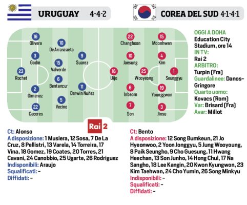 Qatar 2022. Oggi Uruguay-Corea del Sud, le probabili formazioni