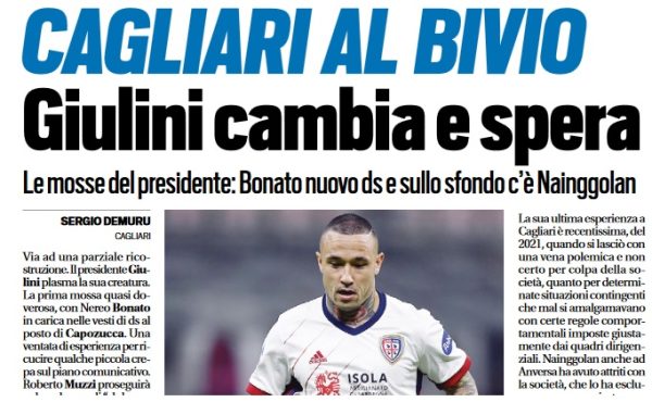 L'edizione odierna di Tuttosport si sofferma sul Cagliari che sta ricostruendo tutto a partire dalla dirigenza. Via ad una parziale...