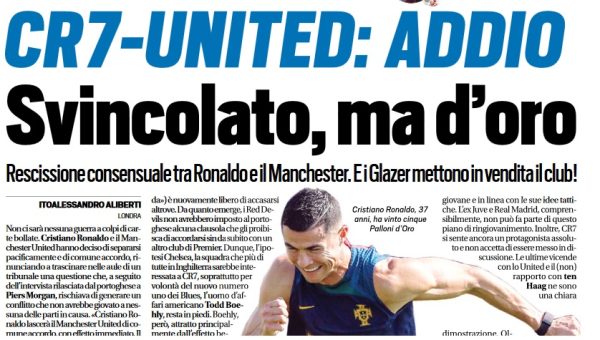 L'edizione odierna di Tuttosport si sofferma sul caso CR7 che ha detto addio allo United. Il quotidiano analizza quello che...