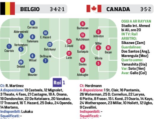 L'edizione odierna de "Il Corriere dello Sport" si sofferma sulle probabili formazioni del match del Mondiale in programma oggi alle...