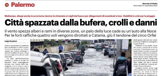 L'edizione odierna de "Il Giornale di Sicilia" si sofferma sul maltempo a Palermo. Ancora una giornata di passione per il...