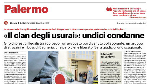 L'edizione odierna de "Il Giornale di Sicilia" si sofferma sulle undici usurai condannati. Gli interessi per un prestito con tassi...