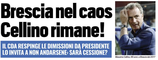 L'edizione odierna di Tuttosport si sofferma sulla serie B e sul caos in casa Brescia. E adesso al Brescia è...