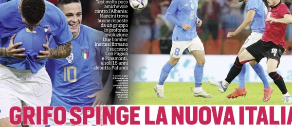 L'edizione odierna de "Il Corriere dello Sport" si sofferma sull'Italia che ha battuto l'Albania trasportata da Grifo andato a segno...