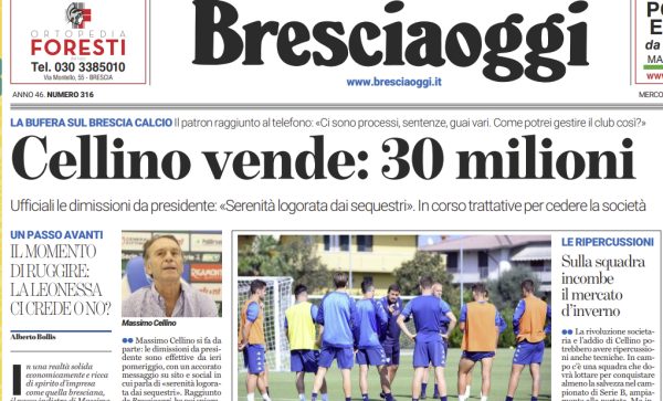 L'edizione odierna di "Brescia Oggi" si sofferma sulle dimissioni di Cellino da patron del Brescia e il club messo in...
