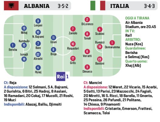 L'edizione odierna de "Il Corriere dello Sport" si sofferma sulla gara tra Albania e Italia in programma stasera stilando le...