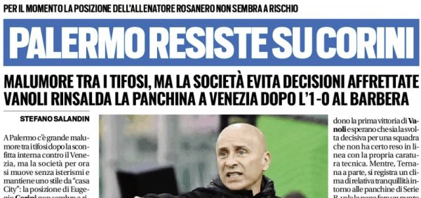 L'edizione odierna di Tuttosport si sofferma sul Palermo che continua con Corini. A Palermo c'è grande malumore tra i tifosi...