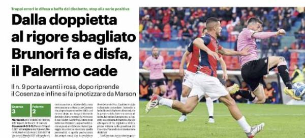 L'edizione odierna de "Il Giornale di Sicilia" si sofferma sulla sconfitta del Palermo contro il Cosenza. Fa tutto Brunori, che...