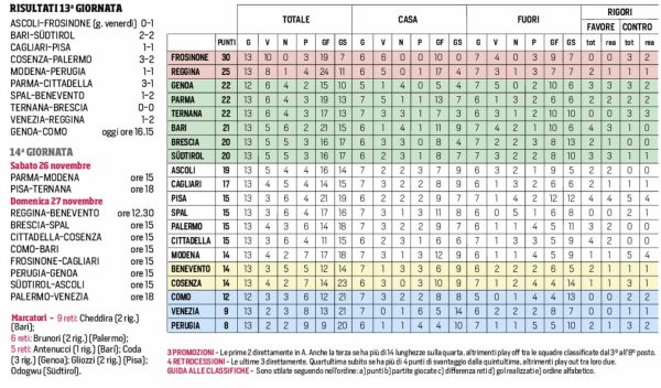 L'edizione odierna de "Il Corriere dello Sport" si sofferma sulla prossima giornata di Serie B. 26/11/2022 Parma-Modena 15.00 26/11/2022 Pisa-Ternana...