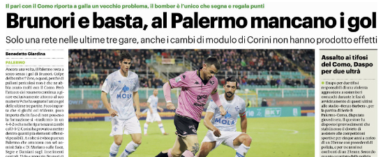 L'edizione odierna de "Il Giornale d Sicilia" si sofferma sulla chance sprecata dal Palermo contro il Como e sulla classifica...