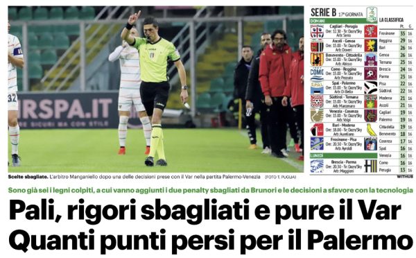 L'edizione odierna de "Il Giornale di Sicilia" si sofferma sui punti persi dal Palermo tra pari, rigori falliti e Var....