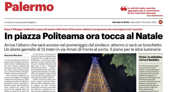 L'edizione odierna de "Il Giornale di Sicilia" si sofferma sul Natale in piazza a Palermo. La città s'accende per la...