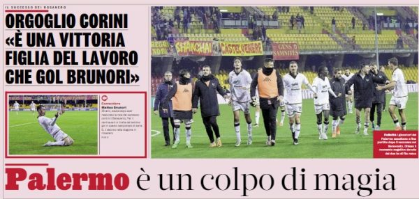 L'edizione odierna de "La Gazzetta dello Sport" si sofferma sulla vittoria del Palermo contro il Benevento. È finita con l'abbraccio...