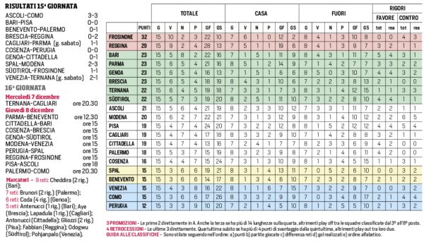 L'edizione odierna de "Il Corriere dello Sport" riporta il programma della prossima giornata di serie B e la classifica aggiornata.