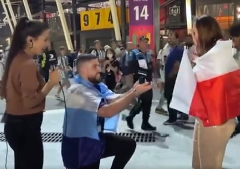 Qatar 2022, Argentina-Polonia: tifoso argentino chiede la mano alla sua compagna polacca, proposta di matrimonio in diretta tv al termine del match (VIDEO)