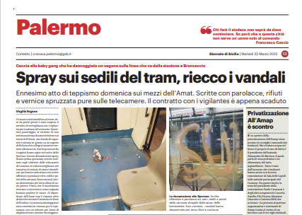 L'edizione odierna de "Il Giornale di Sicilia" si sofferma sui vandali sui tram di Palermo. Un nuovo raid vandalico sul...
