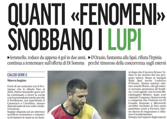 L’edizione odierna de “Il Mattino” si sofferma sul calciomercato dell’Avellino finora “snobbato” da diversi calciatori, tra questi Iemmello che continua...