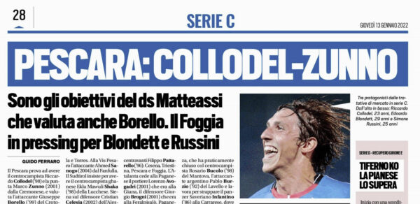 L'edizione odierna de "Il Corriere dello Sport" si sofferma sulle trattative di mercato del giorno in serie C. Per la...