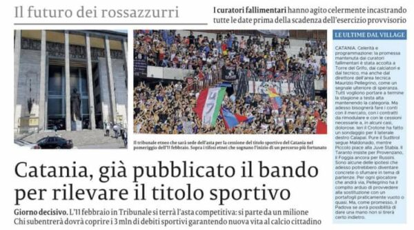 L'edizione odierna de "La Sicilia" si sofferma sul Catania e sulla pubblicazione del bando. Dal 2014 ad oggi in casa...