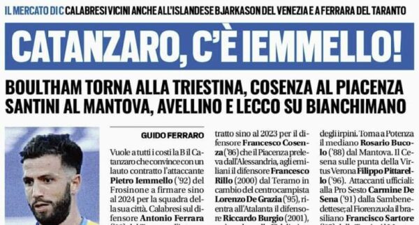 L'edizione odierna di Tuttosport si sofferma sul calciomercato delle squadre di C in particolare sul Catanzaro. Vuole a tutti i...