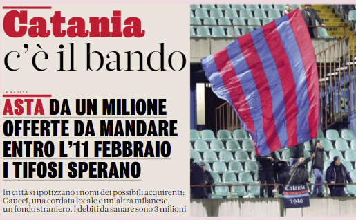 L'edizione odierna de "La Gazzetta dello Sport" si sofferma sul Catania e sulla pubblicazione del bando per il titolo sportivo....