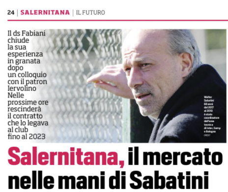L'edizione odierna de "Il Corriere dello Sport" si sofferma sul mercato della Salernitana con l'arrivo di Sabatini. La Salernitana volta...