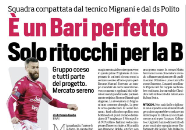 L'edizione odierna de "Il Corriere dello Sport" si sofferma sul calciomercato del Bari. Mignanilandia: l’unione fa la forza. In questo...