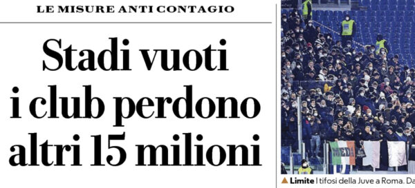 L'edizione odierna de "La Repubblica" calcola i danni economici per i club di serie A dopo le.nuove norme anti-covid che...