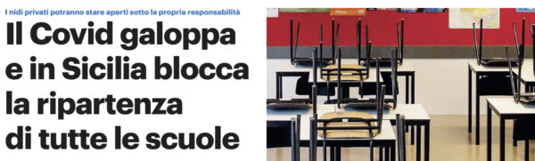 L'edizione odierna de "Il Giornale di Sicilia" si sofferma sul covid in Sicilia che blocca la ripartenza della scuola. Il...