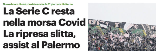 L'edizione odierna de "Il Giornale di Sicilia" si sofferma sull'ennesimo rinvio del campionato di serie C. Fermi tutti, di nuovo....