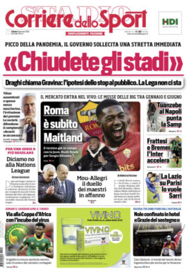 L'edizione odierna de "Il Corriere dello Sport" si sofferma sulla situazione attuale del calcio italiano falcidiato dal Covid, in particolar...