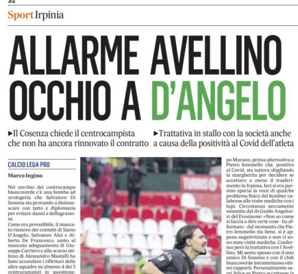 L'edizione odierna de "Il Mattino" si sofferma sul mercato dell'Avellino con il Cosenza in pressing su D'Angelo ancora senza rinnovo...