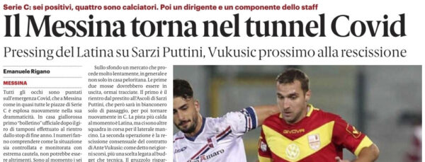 L'edizione odierna de "La Gazzetta del Sud" si sofferma sull'Acr Messina tra covid e mercato. Uno dei calciatori giallorossi, Filippo...