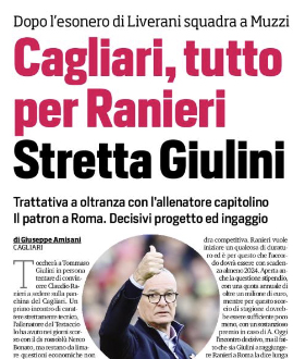 Corriere dello Sport: “Cagliari, tutto per Ranieri. Stretta Giuliani”