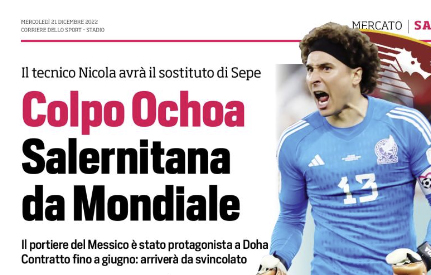 L'edizione odierna de "Il Corriere dello Sport" si sofferma sul colpo Ochoa per la Salernitana. Guillermo Ochoa (37) si appresta...