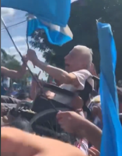 Continua la festa per la vittorie del Mondiale dell'Argentina. Ancora festeggiamenti tra i tifosi argentini, c'è anche chi in sedia...