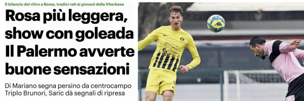 L'edizione odierna de "Il Giornale di Sicilia" si sofferma sul Palermo che vince in allenamento contro la Primavera della Viterbese....