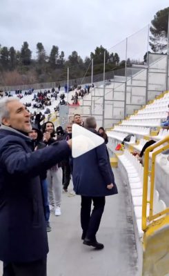 Prima dell'inizio del match Ascoli-Palermo, il presidente Dario Mirri è andato a trovare i tifosi rosanero presenti nel settore ospiti...
