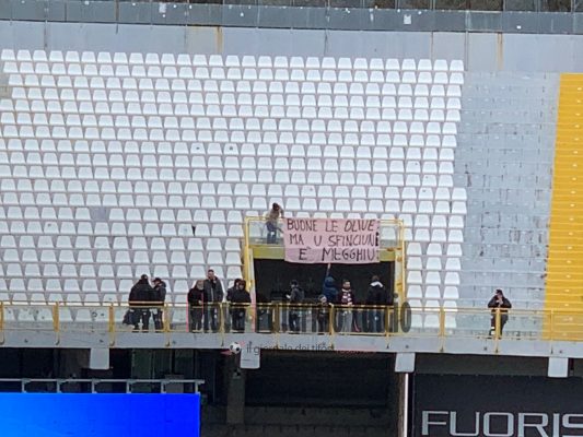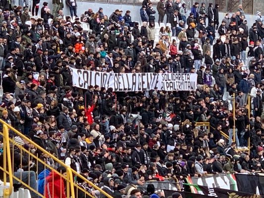 La Curva dell'Ascoli dedica uno striscione ai tifosi del Palermo dopo i disagi avuti in questi giorni per via dello...