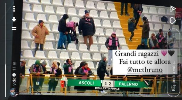 Ascoli-Palermo, Vido sui social esalta Brunori: “Fai tutto tu” (FOTO)