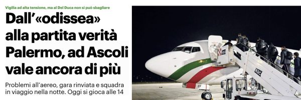 L'edizione odierna de "Il Giornale di Sicilia" si sofferma sulla disavventura del Palermo all'aeroporto in occasione della partenza per Ascoli....