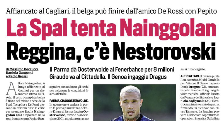 L'edizione odierna de "Il Corriere dello Sport" si sofferma sulle trattative del giorno in serie B. Affare Nainggolan. A lungo...