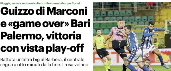 Gds: “Guizzo di Marconi e «game over» Bari. Palermo, vittoria con vista play-off”