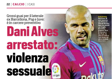 L'edizione odierna de "Il Corriere dello Sport" si sofferma sull'arresto di Dani Alves. Guai grossi per Dani Alves. L’ex di...